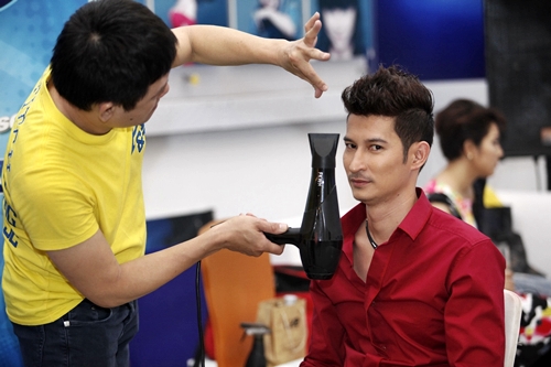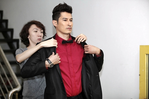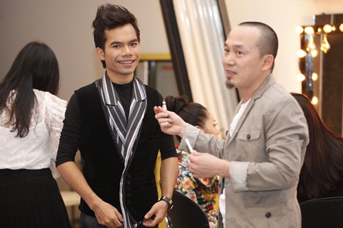 Huy Khánh cũng chỉn chu về "nhan sắc" và trang phục trước giờ ghi hình.
