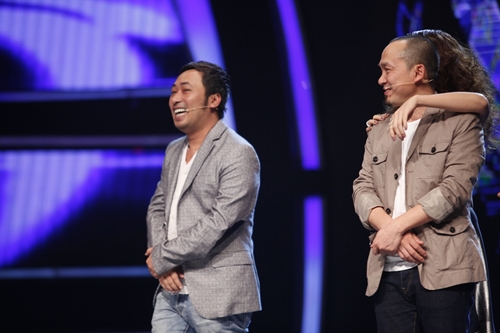 Bối rối vì được khen đẹp, Mỹ Tâm vội ôm lấy Quốc Trung. Hành động dễ thương của cô được khán giả trường quay hưởng ứng nhiệt liệt.