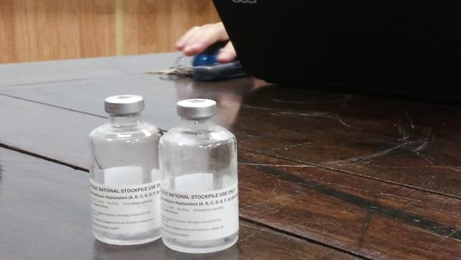 Hai lọ thuốc điều trị ngộ độc do clostridium botulinum được Bệnh viện Bạch Mai nhập khẩu từ Thái Lan với giá 8.000 USD/ lọ (gần 190 triệu đồng). (Ảnh: Nam Nguyễn).