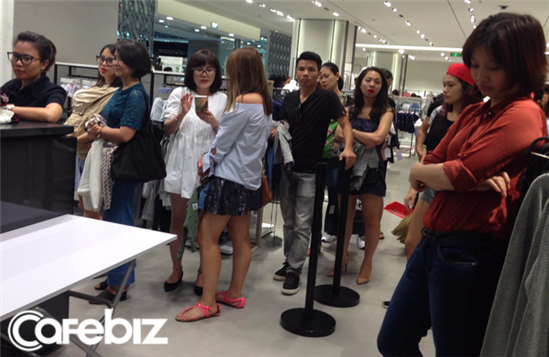 Cảnh người xếp hàng thanh toán tại cửa hàng Zara tại TP HCM chiều 14/9. Ảnh: Thế Trần