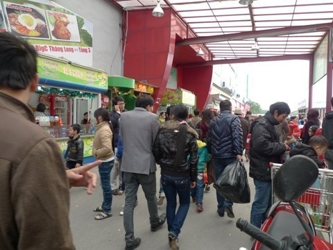 Khách đến mua hàng tại siêu thị Big C Thăng Long vô cùng đông vui nhộn nhịp, khiến không ít người liên tưởng đến cảnh những ngày giáp tết âm lịch người dân đổ xô đi mua đồ sắm tết. Mặc dù dân Việt không có thói quen mua tích trữ thực phẩm cho tết dương lịch, hiện tượng khách hàng tăng đột biến tại các siêu thị có lẽ là do đi siêu thị cũng là một cách chơi tết của người dân thủ đô.