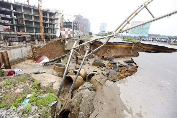 Khoảng 6g sáng 19-8, một đoạn đường trục phát triển phía bắc quận Hà Đông (Hà Nội - đoạn tiếp nối Lê Văn Lương kéo dài) xuất hiện một hố sụt lở và hố này đã liên tục mở rộng.