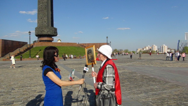 Chàng thanh niên Côn-stan-tin mang trên tay tấm chân dung ông, bà là những Cựu chiến binh Vệ Quốc tự hào nói: “Đây là bà của tôi, còn đây là ông của tôi, họ đã đi qua chiến tranh từ ngày đầu cho đến ngày Chiến thắng, sau đó họ kết hôn. Sau chiến tranh, ông bà tôi đã làm việc cho đến khi về già. Bà tôi đã mất gần chục năm, nhưng mọi người trong gia đình tôi đều nhớ về bà. Không chỉ gia đình tôi, mà cả nước Nga đều nhớ về những chiến công của những người lính đã chiến đấu cho chúng ta có cuộc sống tốt đẹp ngày hôm nay.”