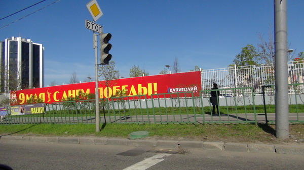 Biểu ngữ  chào mừng ngày Chiến thắng trên đường phố Matxcova 9-5-2013