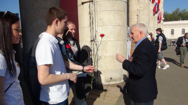 Anh Xec-gây, một quân nhân thế hệ trẻ là người nối nghiệp cha rất vui mừng với một hoạt động kỷ niệm theo cách của mình đó là mang chiếc xe ô tô dã chiến lên Quảng trường Chiến thắng và mặc quân phục cùng các đồng đội của mình để các bạn trẻ có thể tới giao lưu và chụp ảnh lưu niệm. Anh nói: “Những người lính Xô-viết đã chiến đấu trên những chiếc xe như thế này. Chúng tôi không thuộc một phong trào xã hội nào, ông của cậu này, bố của tôi đã tham gia cuộc chiến này, do đó chúng tôi có chiếc xe này và muốn giới thiệu với mọi người tưởng nhớ về thế hệ cha ông của mình và nhân lên lòng yêu nước trong thế hệ trẻ hôm nay.”
