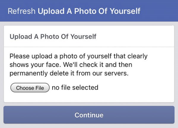 Facebook yêu cầu đăng nhập bằng ảnh selfie cá nhân.