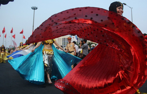 Nghệ sĩ đoàn Rio en Caribe - Colombia biểu diễn múa hát truyền thống phục vụ quần chúng và các đại sứ của nhiều nước trong buổi khai mạc