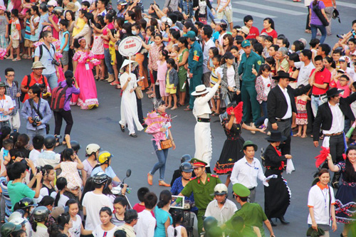 Chiều 13.4, Festival Huế 2014 khai mạc chương trình lễ hội đường phố với chủ đề Di sản và sắc màu văn hóa.