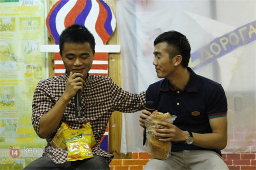 Anh Quân (tay trái) hiện là sinh viên năm 2 chuyên ngành Kinh Tế thế giới, còn Huy Còi (tay phải) cũng đang học năm 2 sinh viên kỹ thuật