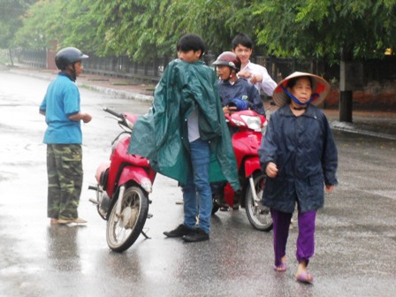 Tại Ninh Bình, từ sáng sớm, trên địa bàn thành phố Ninh Bình trời mưa rất to nhưng cả phụ huynh và thí sinh “đội mưa” đến các địa điểm dự thi ngày một đông.