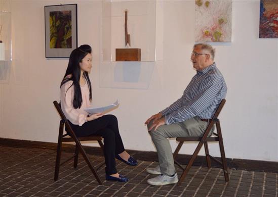 Lan Anh phỏng vấn đạo diễn Jiri Menzel - người từng đoạt giải Oscar cho phim điện ảnh đầu tiên khi mới 28 tuổi. Ảnh: NVCC