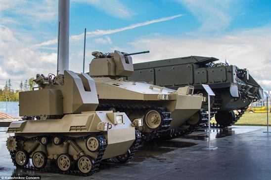 Bên cạnh việc đầu tư nghiên cứu máy bay không người lái, Quân đội Nga còn tích cực đẩy mạnh các dự án phát triển xe tăng không người lái vũ trang hỏa lực mạnh.