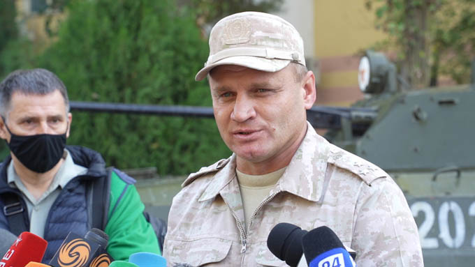Đại tá Yevgeny Okhrimenko, Tham mưu trưởng Căn cứ quân sự 201 trả lời phỏng vấn báo giới.