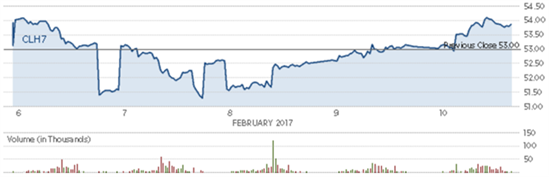 Giá dầu thô Mỹ giao tháng Tư tăng 86 cent, tương đương 1,6%, lên 53,86USD/thùng trên Sở giao dịch chứng khoán New York Mercantile.