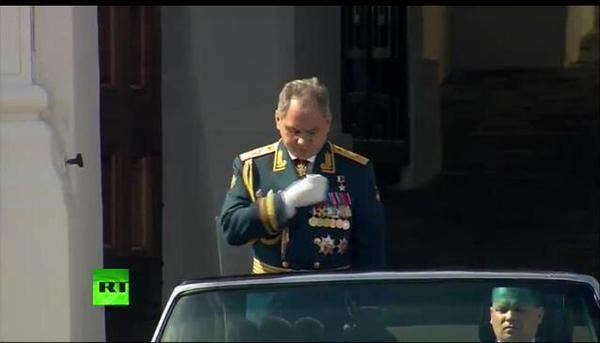Đây được coi là khoảnh khắc đặc biệt trong dịp lễ trọng đại kỉ niệm 70 năm chiến thắng phát xít. Đó chính là hành động chưa có trong tiền lệ đối với một Bộ trưởng Quốc phòng Nga.