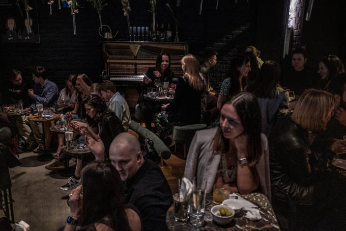 Nest Cocktail, một quán bar nhỏ ở Moscow (Nga), mở cửa trở lại vào cuối tháng 6 sau hơn 2 tháng tạm đóng do dịch. Quán đã cung cấp khẩu trang miễn phí và nước rửa tay khô ở lối vào để giúp khách hàng an tâm hơn khi ngồi cách nhau chỉ vài chục cm quanh những chiếc bàn nhỏ.