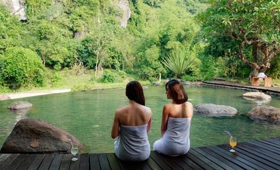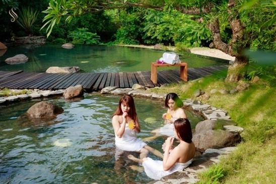 Nếu muốn "đổi gió" cho kỳ nghỉ của mình, gia đình hay bạn bè mà không phải di chuyển quá xa Thủ đô, bạn có thể lựa chọn khu nghỉ dưỡng thiên nhiên lại được tắm suối khoáng nước nóng tự nhiên hay được thử kiểu tắm Nhật vô cùng thi vị. Ảnh trong bài: Serena Resort.