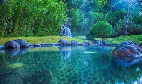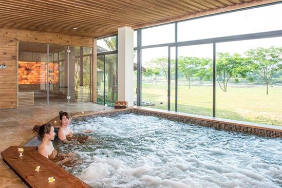 Điểm nhấn của khu mang phong cách Nhật Bản này chính là nguồn nước khoáng tự nhiên với nhiều khoáng chất được dẫn ra các bể bơi của resort.