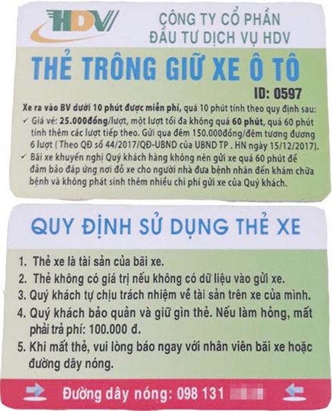 Bảo vệ của bệnh viện cũng giải thích cho người lái xe về việc vào bệnh viện đưới 10 phút sẽ được miễn phí, gửi trên 10 phút sẽ mất phí và tính theo thời gian là 60 phút mỗi lần.
