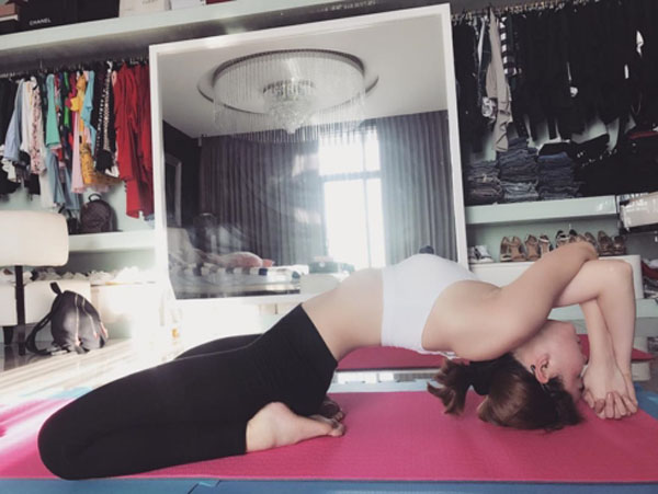 Ngọc Trinh là một trong những mỹ nhân chăm chỉ tập yoga.