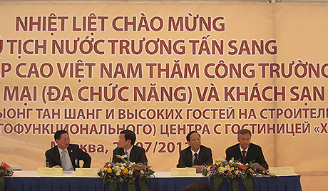 Trong tháng vừa qua tòa nhà khách sạn trong Trung tâm Văn hóa-Thương mại Hà Nội tương lai đang được xây dựng ở Matxcơva đã cao thêm mười mét. Giá như có nhiều thời gian hơn, thì khi đến thăm chủ thể kiến thiết này ngày 28 tháng Bảy Chủ tịch Việt Nam Trương Tấn Sang có thể ngắm toàn cảnh Matxcơva từ tầm cao của tầng nhà thứ 20.