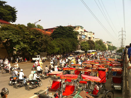 Ùn tắc kéo dài sang cả đường Trần Quang Khải gần hiện trường đám cháy.