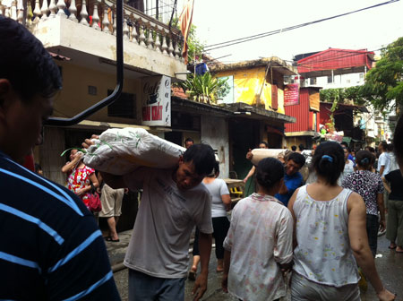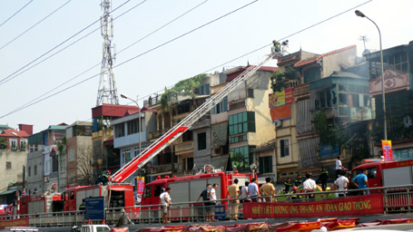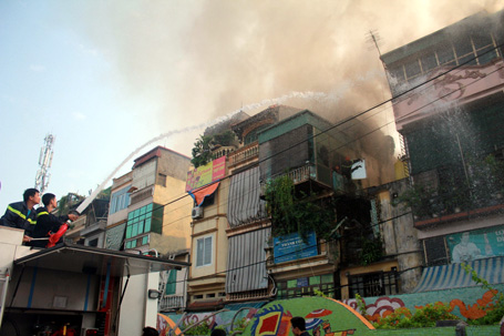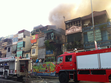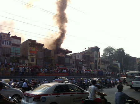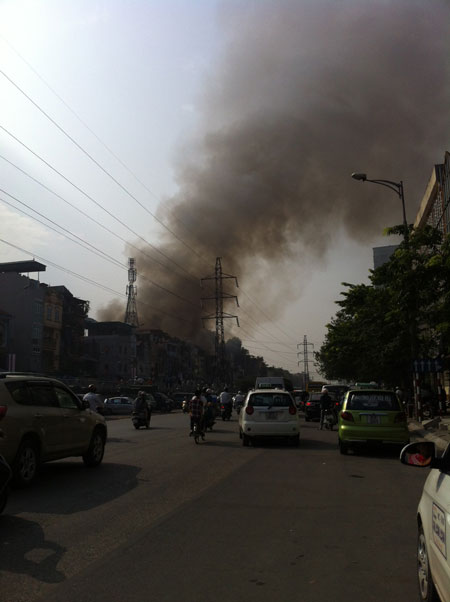 Sau đó lan rộng phủ mù mịt cả một dãy nhà mặt đường Hồng Hà