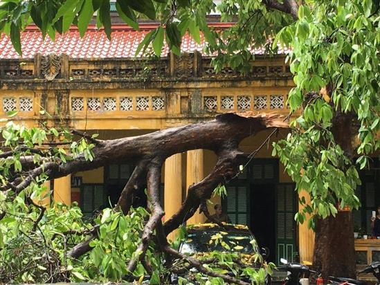 Gió giật mạnh khiến cây cổ thụ trên phố Tây Sơn gãy đổ.