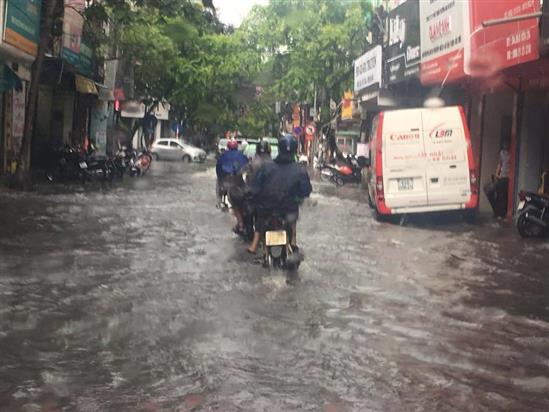 Cơn mưa lớn sáng 12/5 trút xuống khắp các quận trung tâm thành phố Hà Nội.