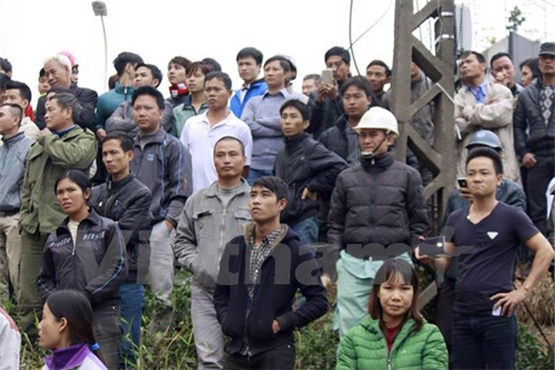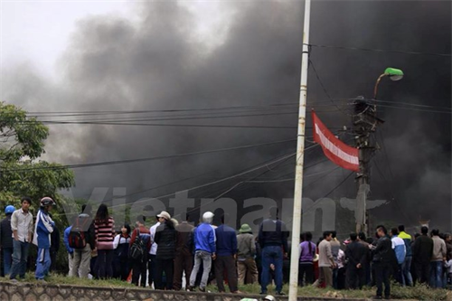 Người dân bao quanh khu vực đám cháy. (PV/Vietnam+)