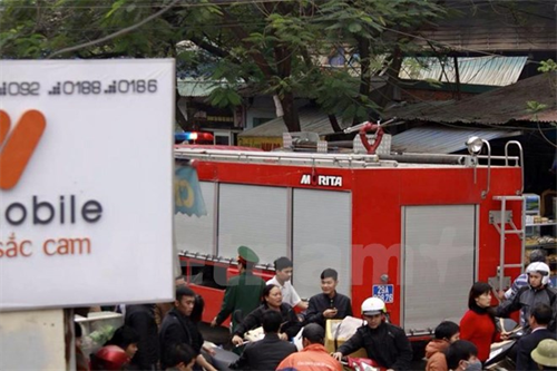 Xe cứu hỏa được điều động đến chữa cháy. (PV/Vietnam+)