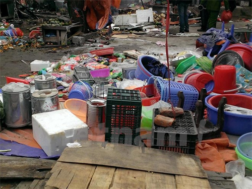 Khung cảnh hỗn loạn tại khu vực chợ Nhật Tân (Ảnh: PV/Vietnam+)