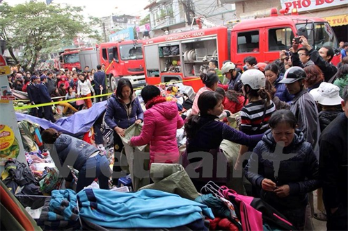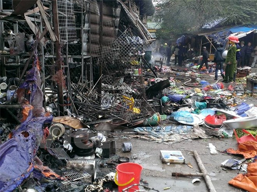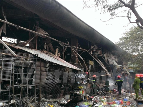 Ngọn lửa đã thiêu rụi nhiều hàng hóa (Ảnh: PV/Vietnam+)