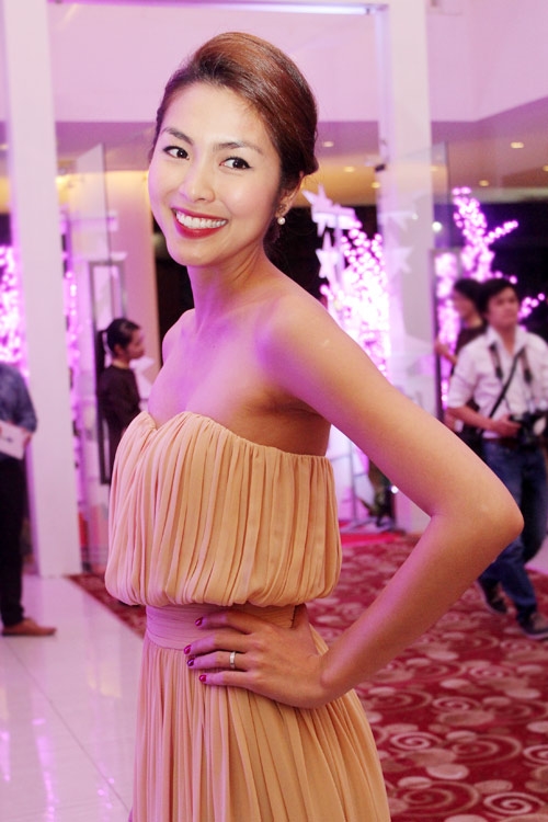 Tới cuối năm 2009, người đẹp bất ngờ thay đổi phong cách. So với hình ảnh cũ (bên trái), thì bộ váy đỏ FCUK nổi bật mà đơn giản cùng kiểu tóc búi trẻ trung, sang trọng đã mang tới đẳng cấp mới cho vẻ ngoài của Tăng Thanh Hà.