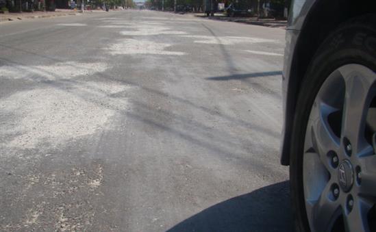 Nhựa chảy loang lỗ trên mặt đường - Ảnh: Văn Định