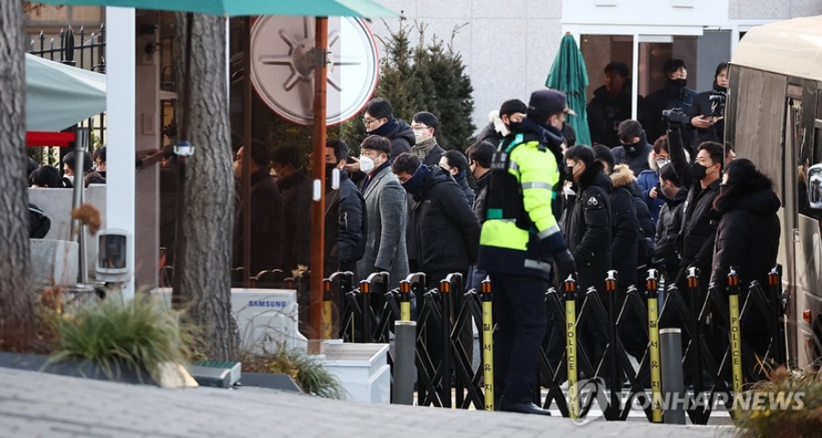Các nhà điều tra từ cơ quan chống tham nhũng nhà nước tiếp cận lối vào dinh thự của Tổng thống Yoon Suk Yeol tại Seoul vào ngày 3/1. Ảnh: Yonhap.
