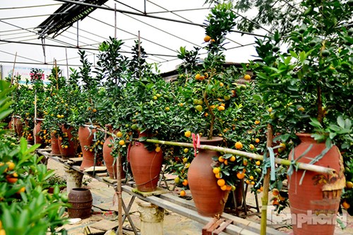 Những cây độc đáo nhất trong vườn nhà ông là những cây quất có tuổi đời trên 10 năm giá lên đến 20 triệu đồng/chậu. Những cây này gia đình chỉ cho thuê chứ không bán.