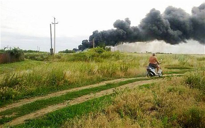 Những cột khói bốc cao trên cánh đồng Đông Ukraine.