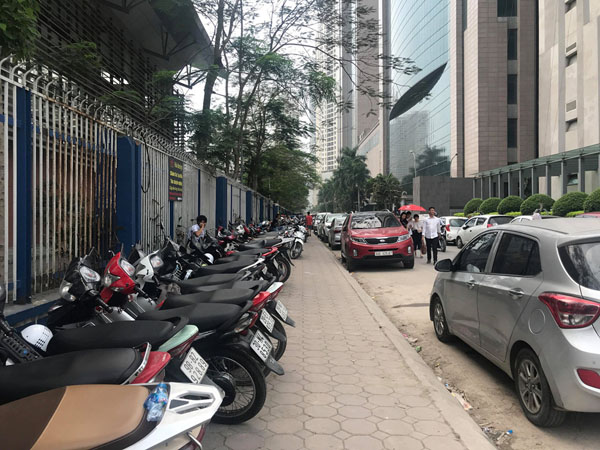 Vỉa hè, lòng đường xung quanh khu vực Phòng Lãnh sự Hàn Quốc được trưng dụng làm "bãi xe". Ảnh: Trần Cường.