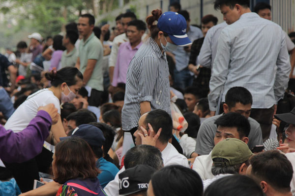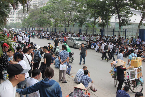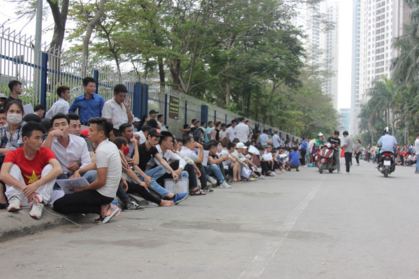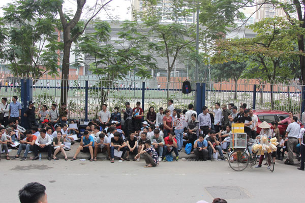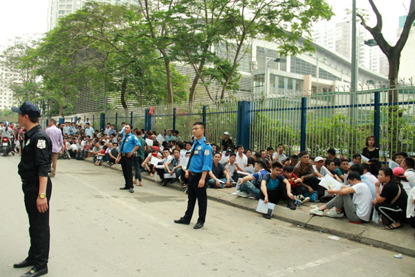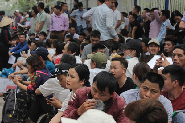 Từ sáng sớm 10.4, nhiều người dân từ khắp nơi đã đổ về trước Phòng Lãnh sự Hàn Quốc tại quận Cầu Giấy (Hà Nội) để chờ làm thủ tục cấp visa, khiến nơi đây trở nên đông đúc, nhốn nháo. Hàng ngàn người chen lấn, ken kín đoạn đường trước Phòng Lãnh sự Hàn Quốc, lực lượng bảo vệ phải căng mình để đảm bảo an ninh trật tự.