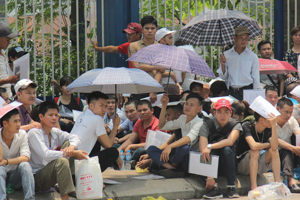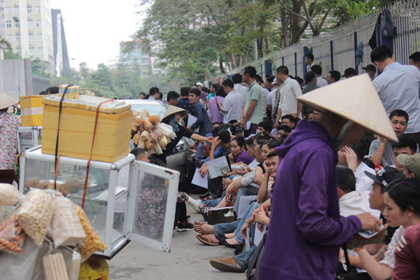 Đội nắng, vật vờ chờ đợi đến lượt. Ảnh: Trần Cường.