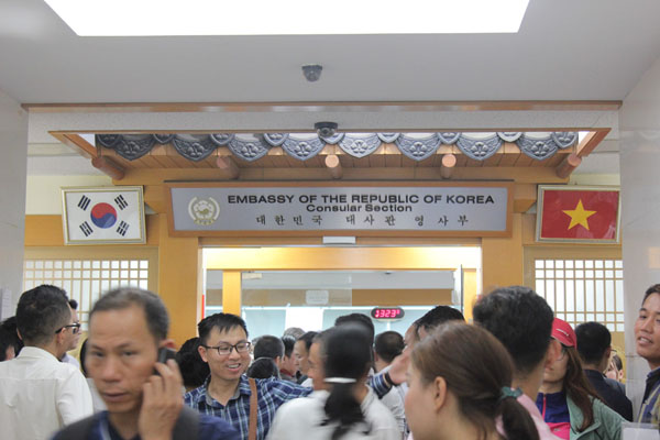 Khoảng 9 giờ sáng cùng ngày, các cán bộ Phòng Lãnh sự Hàn Quốc bắt đầu mở cửa, phát số thứ tự vào nộp hồ sơ cho người dân. Mỗi ngày, Phòng Lãnh sự Hàn Quốc phát ra khoảng 300 số, tuy nhiên, số người đến có thể gấp nhiều lần số vé đợi được phát ra. Cả ngàn người dân chưa đến lượt làm việc phải đội nắng, vạ vật tại những quán trà đá, thậm chí ngồi bệt ngay tại vỉa hè trước Phòng lãnh sự.