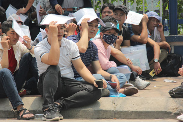 Hàng ngàn người đội nắng, vạ vật chờ làm thủ tục