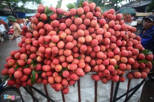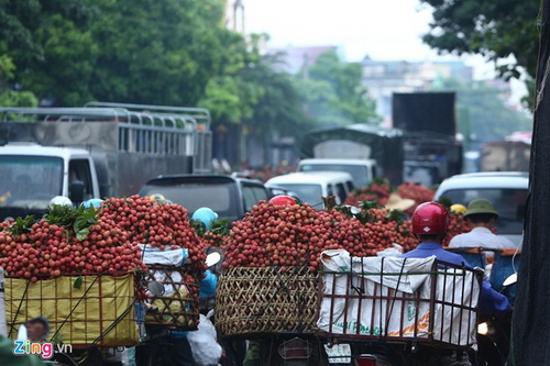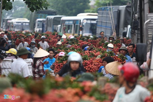 Nơi đây được coi là vựa vải lớn nhất cả nước. Cảnh tấp nập người và xe diễn ra ngay từ 6h sáng.