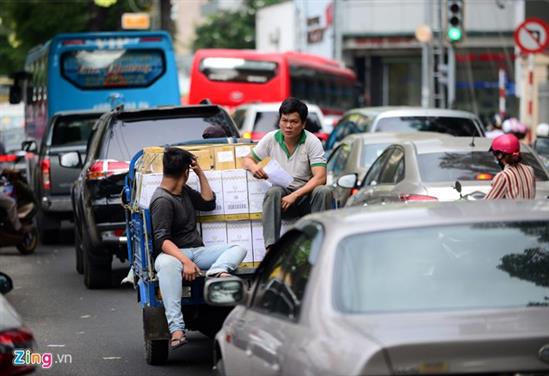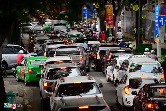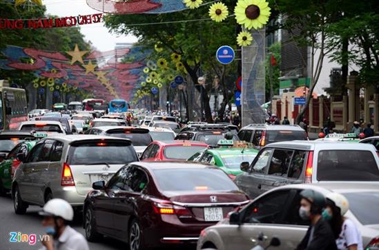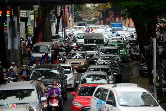 Đường Lê Duẩn, đoạn từ Nhà thờ Đức Bà đến đường Mạc Đĩnh Chi, ôtô xếp hàng dài. Các tuyến đường khác như: Nguyễn Du, Đồng Khởi, Hai Bà Trưng, ở quận 1...  cũng rơi vào tình trạng ùn ứ.