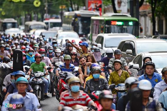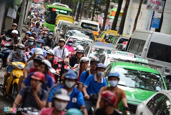 Hàng nghìn xe cộ kẹt cứng ở trung tâm Sài Gòn