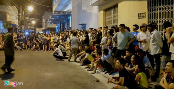 Người dân tập trung theo dõi cơ quan chức năng khám xét ngôi nhà. Ảnh: Zing.vn