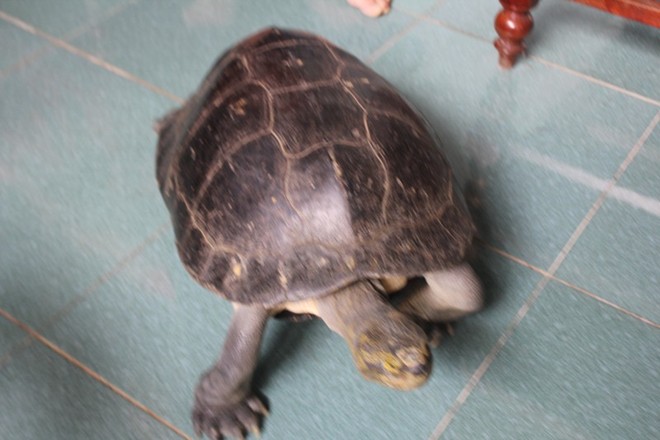 Chú rùa tỏ ra nhanh nhẹn, di chuyển khá nhanh. Theo lời kể của bà Năm, con rùa này bỗng dưng xuất hiện trước cửa nhà bà cách đây 4 ngày. “Khoảng 2h sáng ngày 22/9, tôi đang ngủ