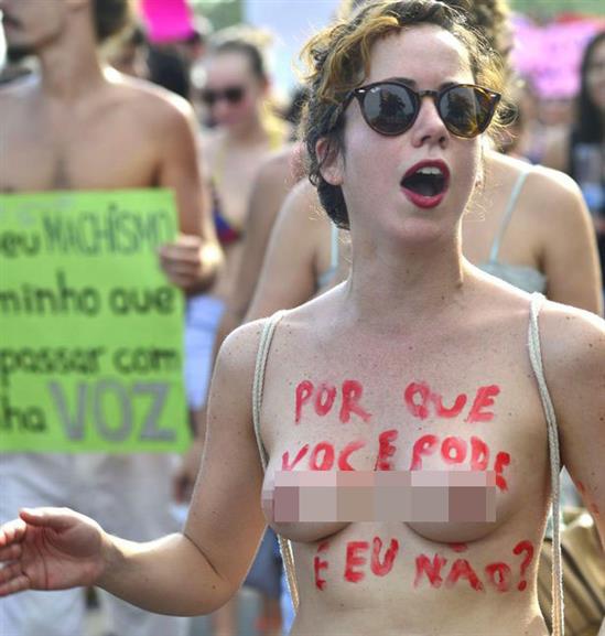 Những người biểu tình cho biết ở Brazil cứ mỗi 2 giờ lại có 1 phụ nữ bị giết, khiến nước này trở thành đất nước nguy hiểm hàng thứ 5 cho phụ nữ. "Đàn ông Brazil nghĩ chúng tôi chỉ là những vật thể. Chúng tôi muốn được làm điều mình thích với chính cơ thể mình mà không bị cưỡng dâm", Indara Costa, 18 tuổi, cho biết.