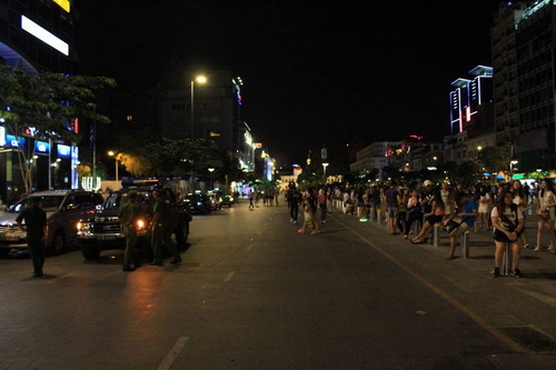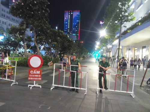 Toàn bộ khu phố đi bộ Nguyễn Huệ ngay trung tâm quận 1, TP.HCM, đã được cảnh sát phong tỏa, không cho xe có động cơ vào bên trong; đồng thời nhạc nước đã được cho ngưng hoạt động và lực lượng an ninh đã được điều đến khu vực để đảm bảo trật tự.